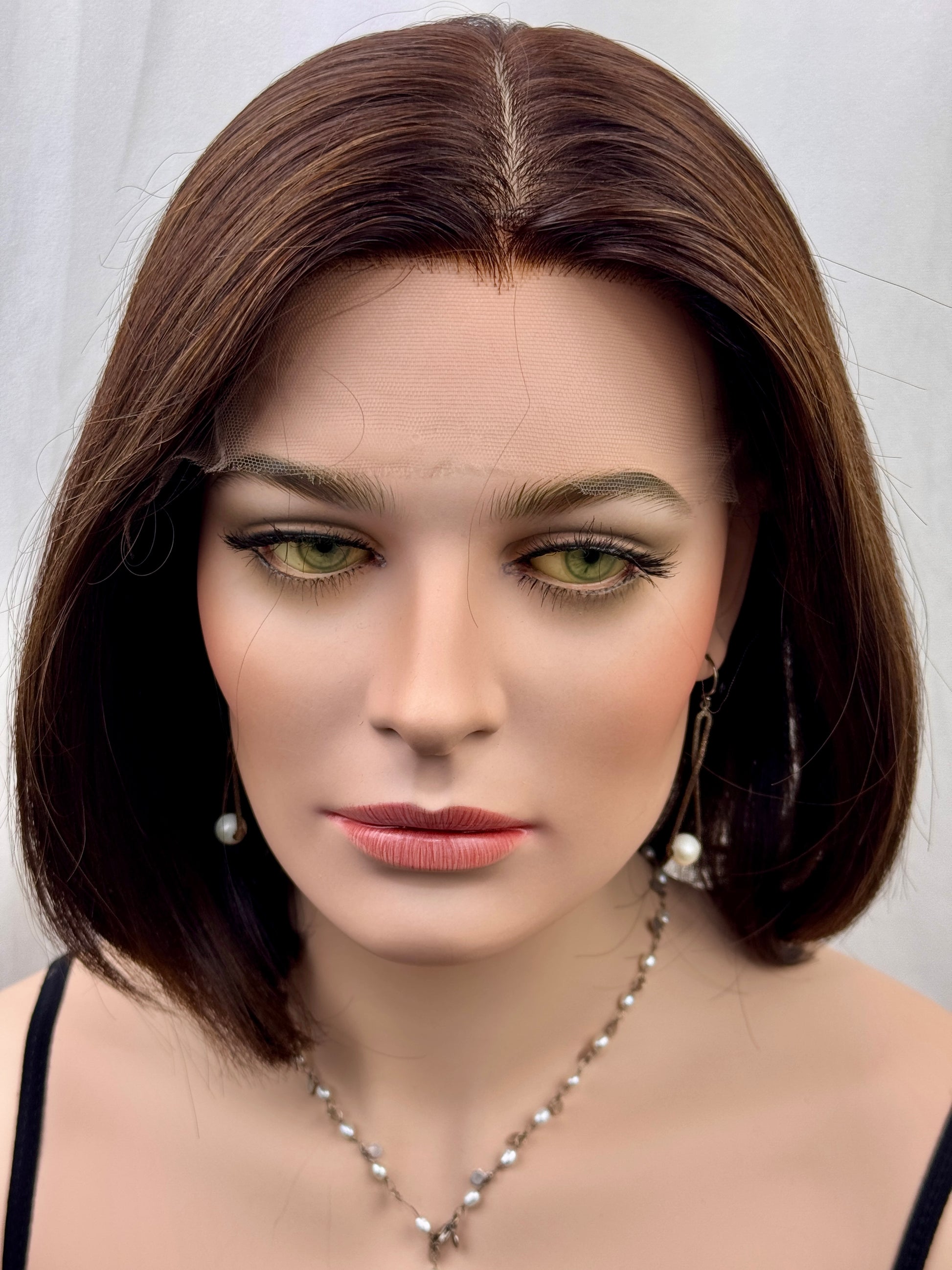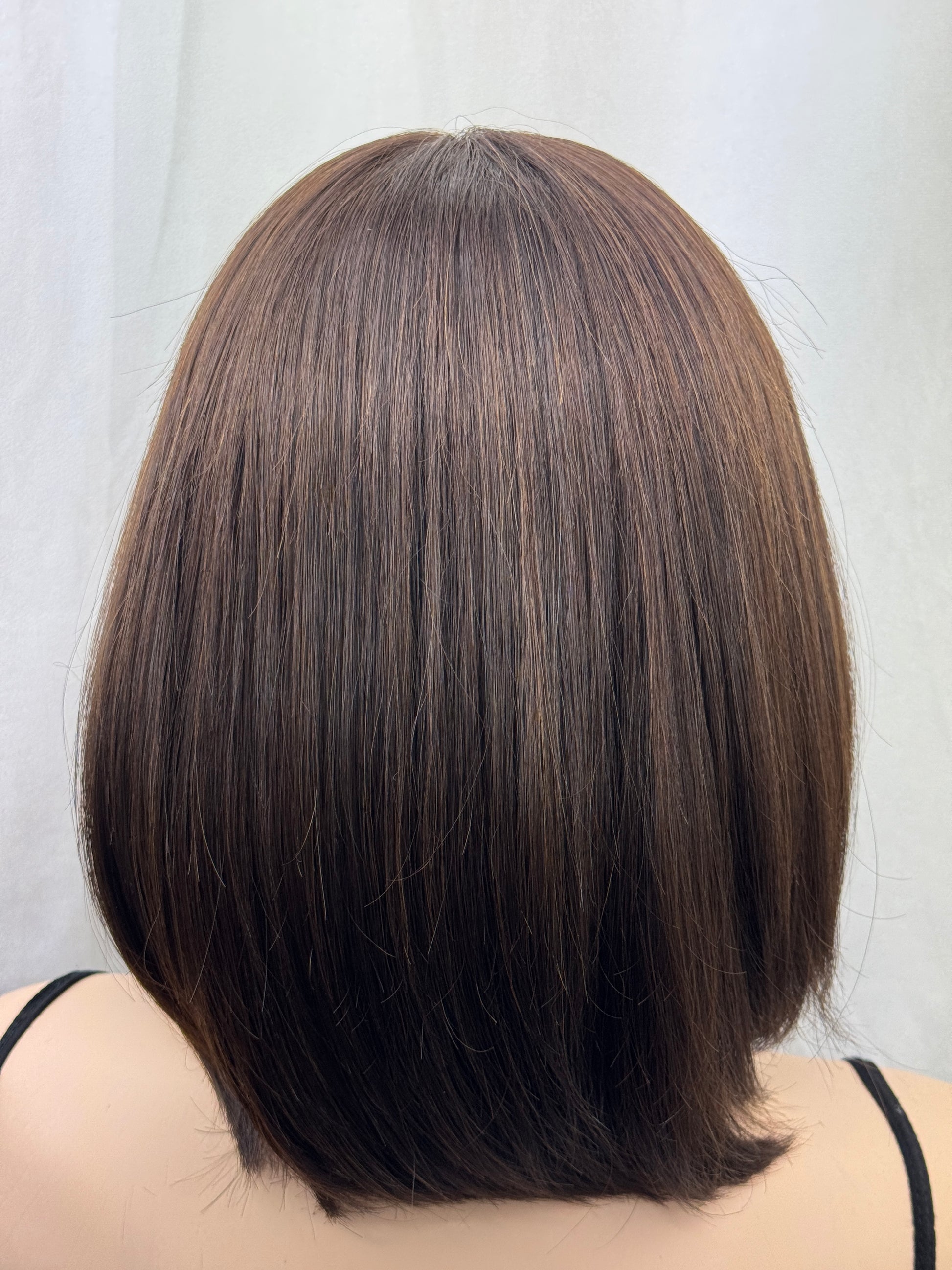 #497Highest Quality Remy Human Hair Medical Cap Silk Top Lace Front Wig with extra light density and very thin, light silk top with lace front(S) 14”