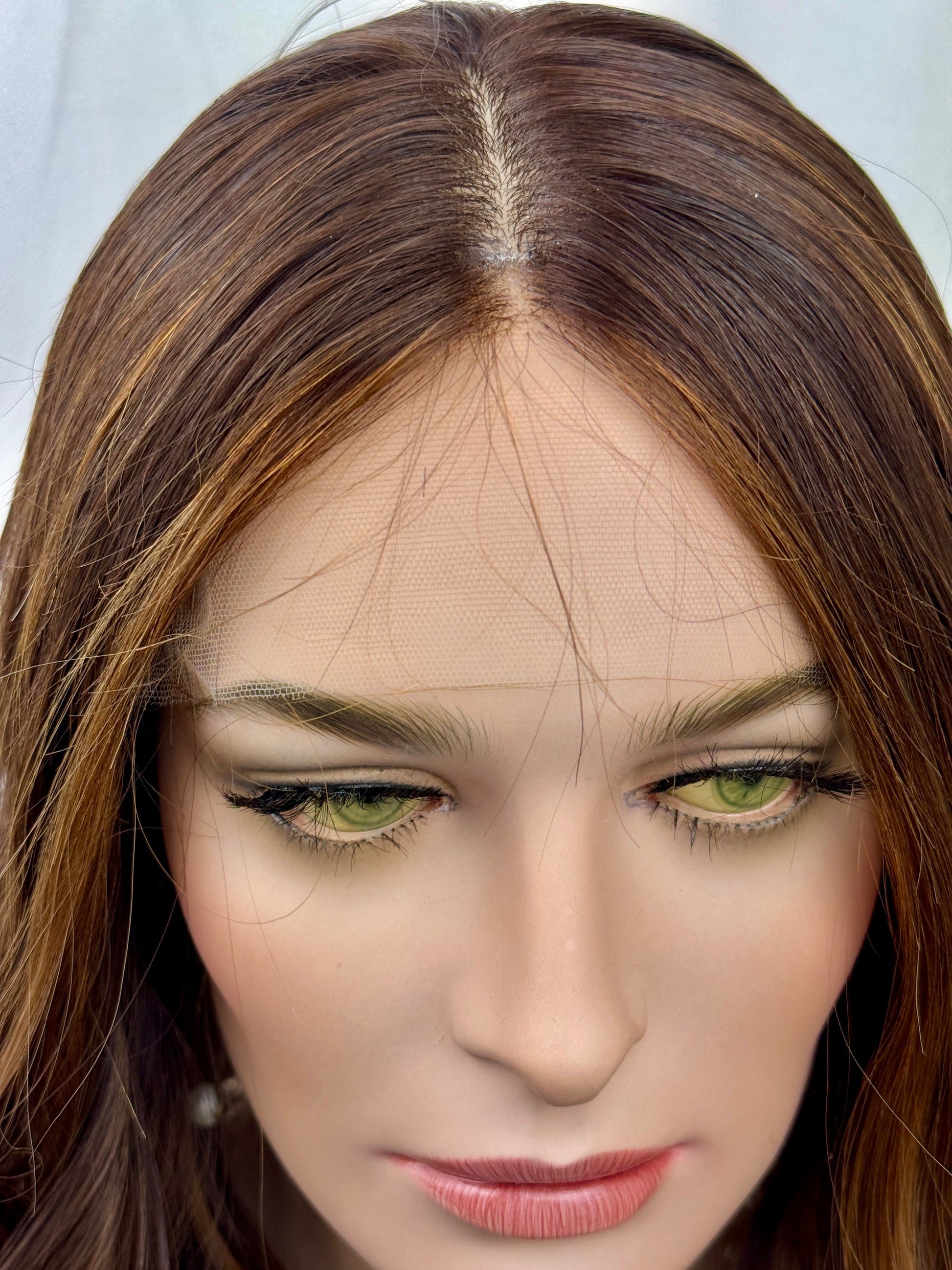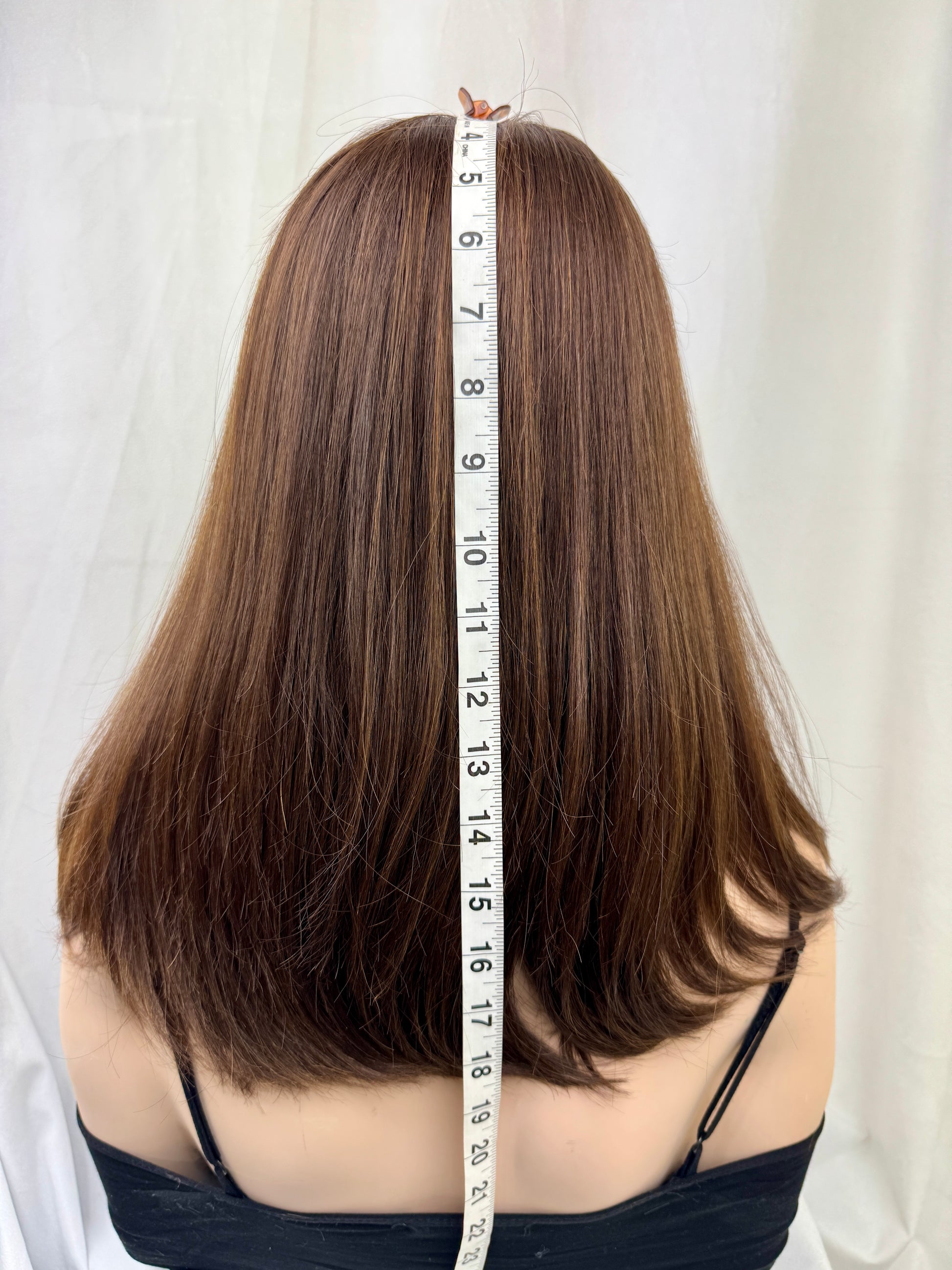 #513 Highest Quality Remy Human Hair medical cap wig with French drawn silk top and lace front and extra light cap and density (S)18”