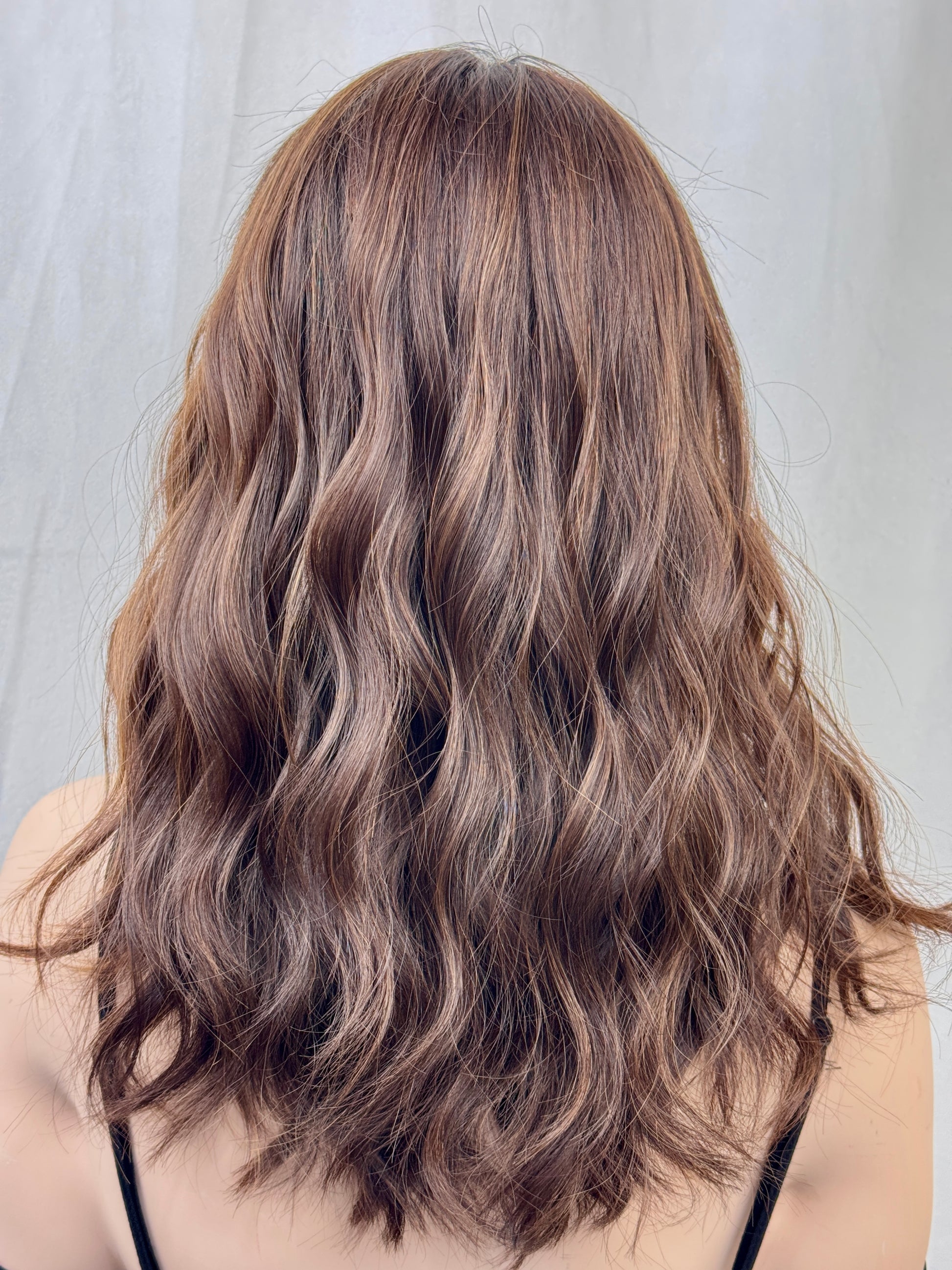 - Color description: dimensional auburn, the root and based are a level 4 warm medium brown mixed with a medium auburn brown that has light auburn brown highlights.